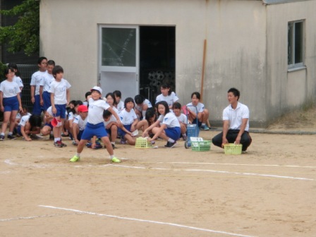 6月24日(金)の2~3限に体力テストが行われました。天候が危ぶまれましたが、無事に行うことができました。ソフトボール投げを紹介します。