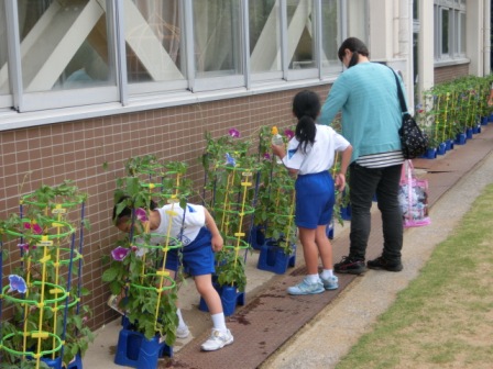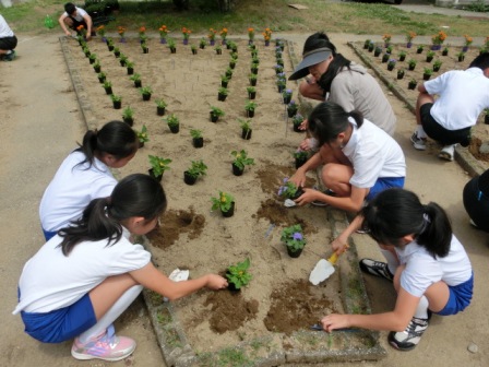 <4年生が植えてくれた「人権の花」=「思いやりの花」>