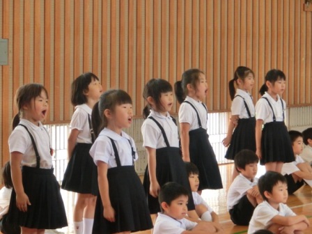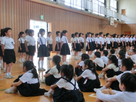 はっきり大きな声で音読ができていたこと、男女別に言う所も上手だったこと。座ったり立ったりも上手だったこと、強弱があったこと等、たくさんのことを5年生が誉めてくれました。よかったですね。