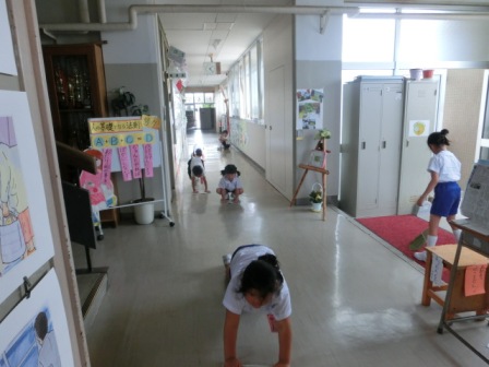 今日は本当に蒸し暑い日でした。汗をかきながらどの子もテストや勉強に頑張っていました。プールの時間のあったクラスは大喜びでした。