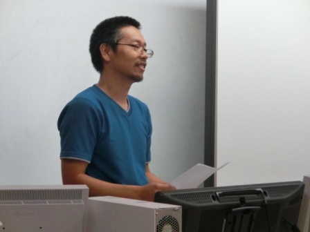 区長さんのご挨拶。その後、宵祭りの時の太鼓の演奏などのビデオを観ました。