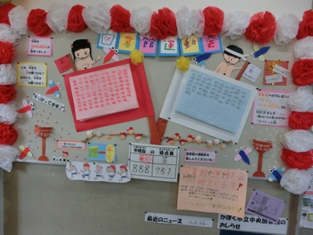 図書室の中へ入ってみると、素敵な掲示板がありました。今、作成中。