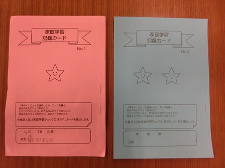 いよいよ2学期の家庭学習カードの取組が本格化しています。26日(月)に2枚目の青カードになった子が一人、昨日、今日はぞくぞくと・・・75人が2枚目を受け取りました。