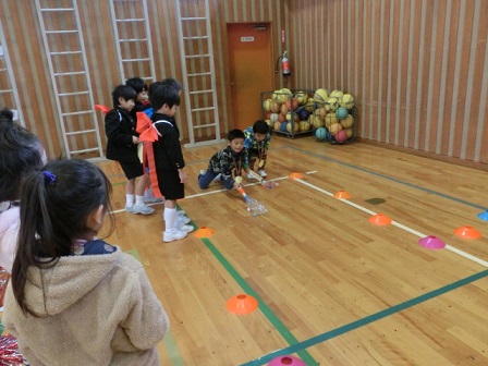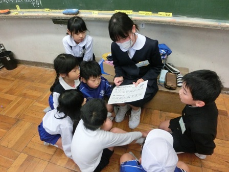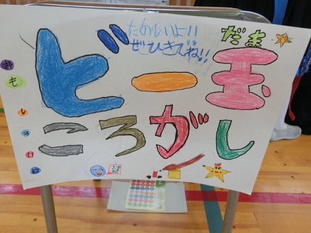 2年生のページにも紹介されていましたが、昨日、保育園の年長さんを招いての「ニコニコおもちゃランド」が開かれました。年長さんに相手意識をもって生活科の学習を行いました。