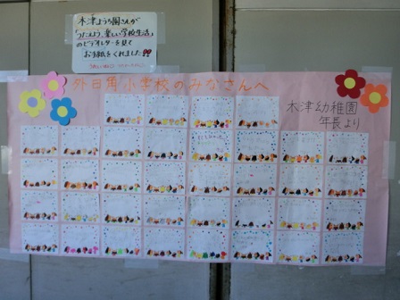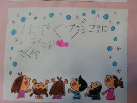 一生懸命に字を書いて、色ぬりもしてくれました。それにとってもうれしい言葉が書かれています。きらきらな心の子どもたちですね。