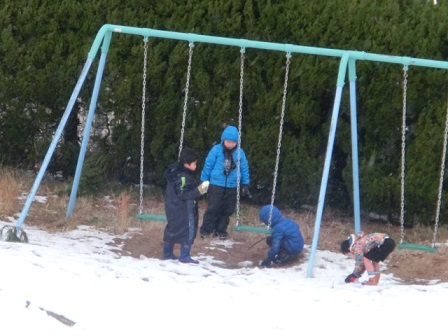 雪玉を作っている?