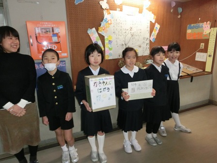 4年生が、総合福祉の勉強の一環で、年賀状の書き損じ、またはあまったもので消印の押されていないものなどを集めています。集まったものは視覚障害のある方々の活動を応援するために寄付します。今週金曜日まで行います。おうちにあるようでしたら、ぜひ子どもさんに持たせて下さい。ご協力をお願いします。