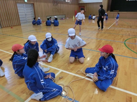 5年生の体育の授業、長なわ集会に向け一生懸命練習していました。