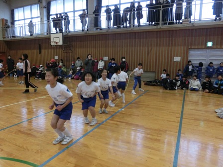 寒波が再びやってきて、凍る朝となりましたが、今日無事に長なわ集会を行うことができました。「全力出し切り 協力ジャンプ」のスローガンのもと、どのチームも目標回数(1年:20回 2年:40回 3年:60回 4年:80回 5年:100回 6年:120回)の達成をめざし、頑張りました。練習の成果を出し目標を達成できたチーム、練習したのに、もう一歩で力を出し切れず悔しかったチームなど、どの学年・クラスにも、それぞれのドラマがあったのだと思います。達成感を味わうのも、悔しさを感じるのも、どちらも勉強、よい経験です。悔しい気持ちを忘れず、体育の時間に練習して、取り返せばよいと思います。うまくいかなかったときほど、成長するチャンスがあるのだと思います。今後のなわとびチャレンジに期待します。今回の「全力」「協力」を学校生活全般に生かしていってほしいとも思います。