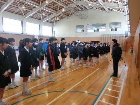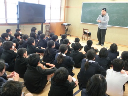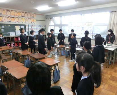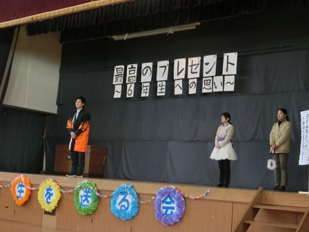 6年生にメッセージを伝えています。