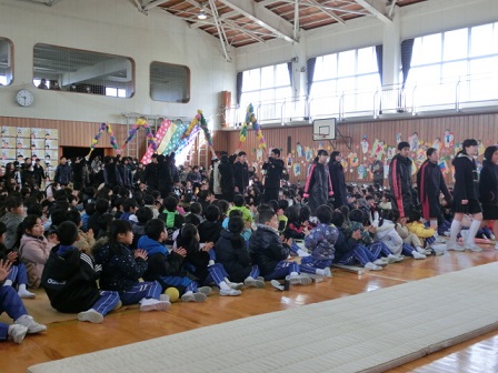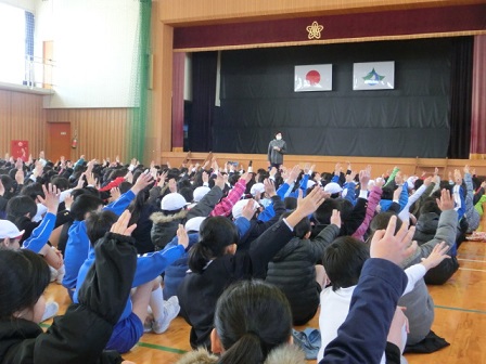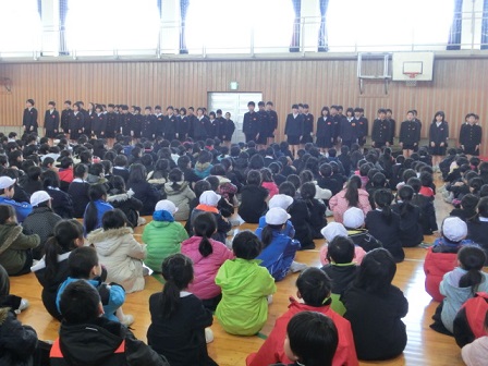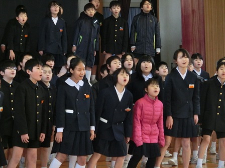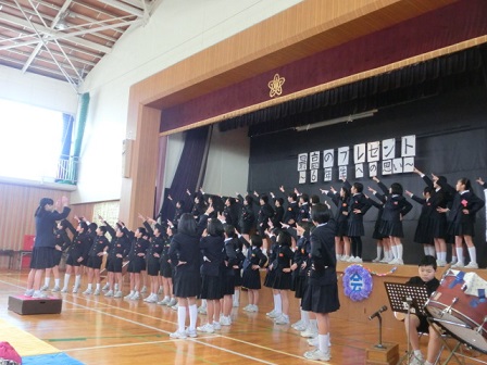 6年生:旅立ち 在校生の気持ちに応えて6年生が歌ってくれました。自分たちで考えた振り付け付です。