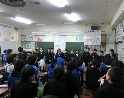 「六年生を送る会」が近づき、5年生が下級生をリードしています。「朝の歌」の時間に、各クラスに行って歌唱指導をしています。「最高のプレゼント~6年生への思い」というキャッチコピーで呼びかけた「6年生を送る会」。最高のプレゼントに期待しています。成功させることで学年力が高まります。6年生までの大切なプロセスですね。
