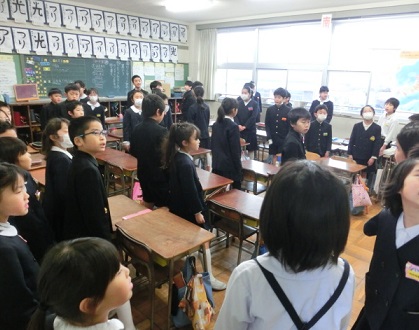 教室での勉強を終え、1年生は年長さんと手をつないで、学校中を案内してあげました。1年生は、昨年、迎えられる方だったのですね。できることが増え、すっかり外小の1年生です。4月になったら先輩です。いろいろ優しく教えてあげてください。