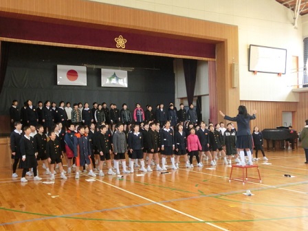 2年教室 歌えているか厳しいチェック?!