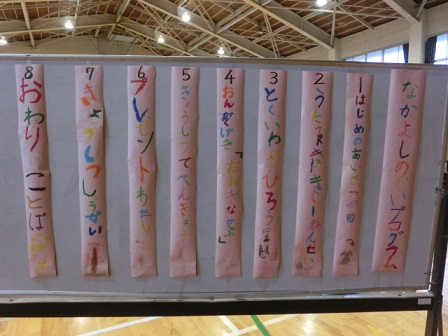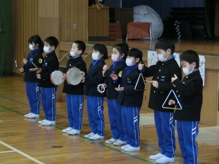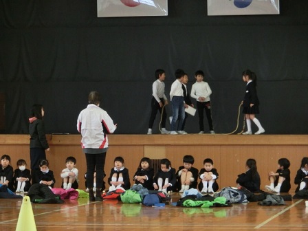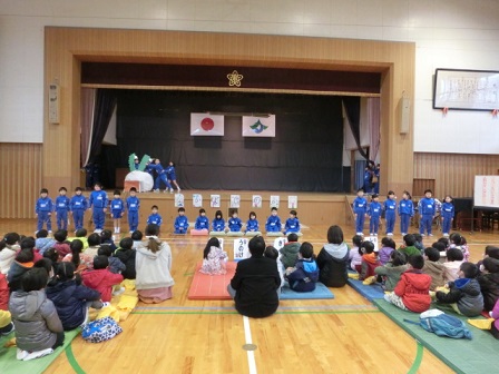今日の2~3限に「なかよしの会(新1年生を迎える会)」が行われました。得意技の紹介や大きなかぶの音楽劇、「これはなんでしょう」のクイズや読み聞かせなど、1年生は年長さんのために一生懸命でした。