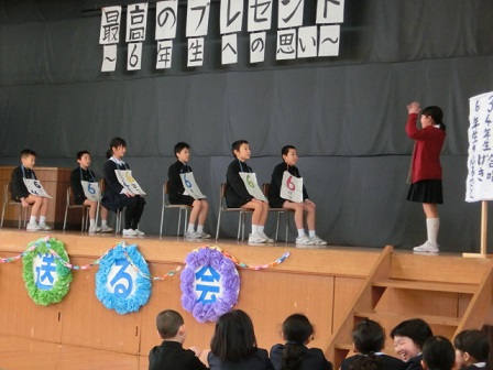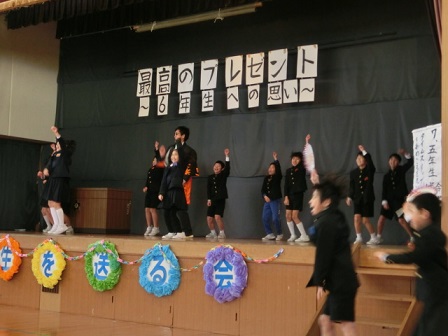 今日、「最高のプレゼント~6年生への思い~」のスローガンのもと、6年生を送る会が行われました。みんなのありがとうの気持ちがたくさん詰まった、まさしく最高のプレゼントを贈ることができた会となりました。また、それぞれの学年の成長が見取れる会ともなりました。見守って下さった来賓(お世話になった地域の方々)の皆様、保護者の皆様、ありがとうございました。