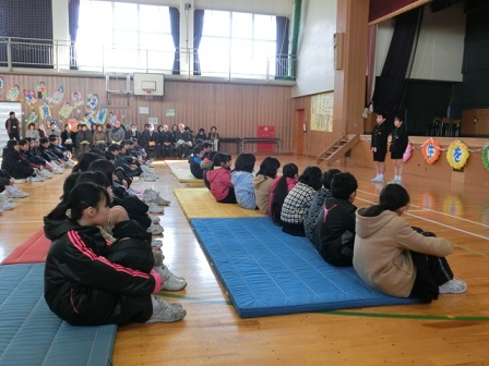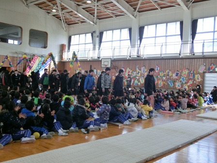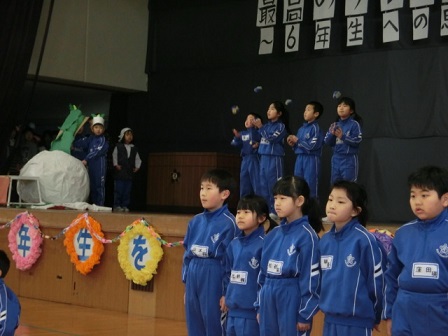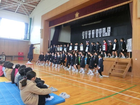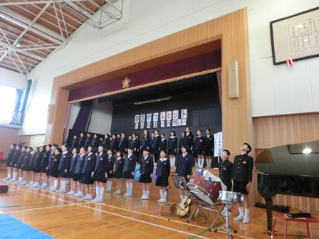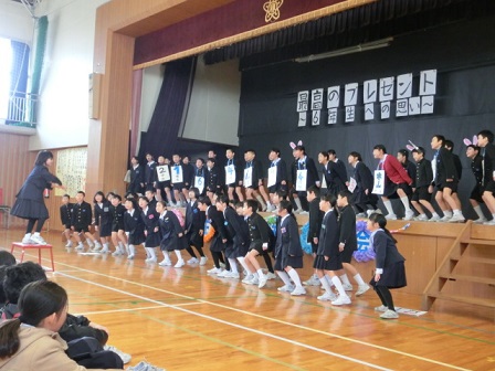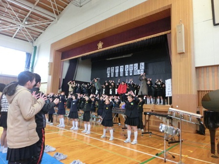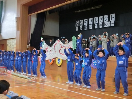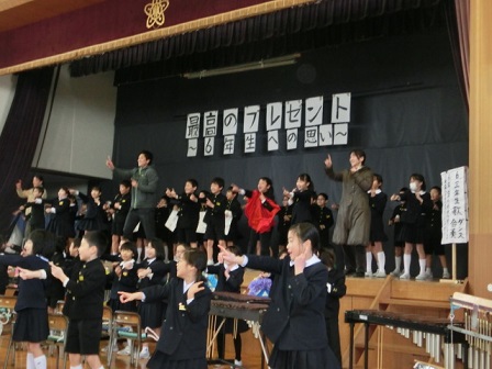 6年生:旅立ち 在校生の気持ちに応えて6年生が歌ってくれました。自分たちで考えた振り付け付です。