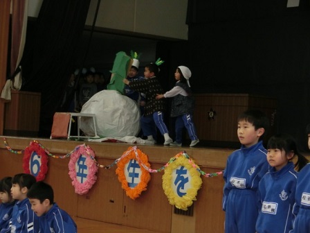 4年生:6年生のふるさと 最強のトップパッター!切れのいい歯切れのいい台詞と動きで笑いを取っていました。伸び伸びとした演技が、いい流れを作りました。