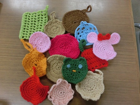 6年生を送る会が終わって、ありがとうの給食までの時間のことです。校長室では編み物教室のような風景がありました。ボランティアの皆さんが、アクリル毛糸で「たわし」を作って下さいました。お掃除の時間、洗面所磨きに使わせていただこうと思います。ありがとうございました!