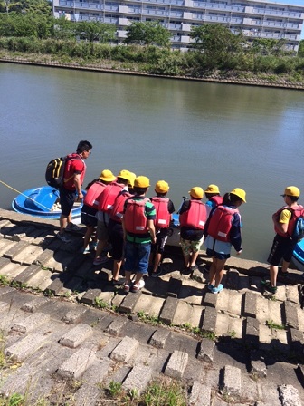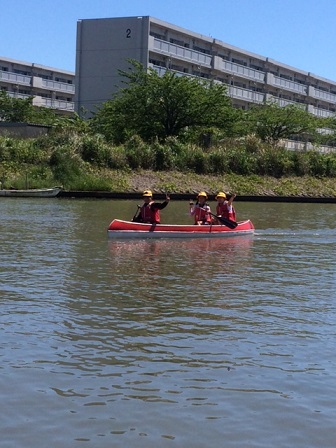 今日、三日目の午前は河川活動でした。本当に最高のお天気に恵まれました。青い空に平らな水面。風もなく十分楽しめたのではないでしょうか。