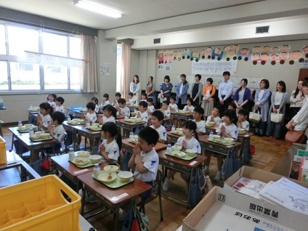 19日(金)お昼に、1年生の保護者の方を対象にした給食試食会が行われました。6年生が合宿中とあって、5年生が給食準備の大役を果たしました。会の内容は、給食準備の様子の参観、試食、栄養教諭のお話です。栄養バランスや安全に配慮され、一食270円で提供される学校給食。子どもたちには、しっかり食べて、作って下さった方への感謝の気持ちも忘れないで欲しいものです。レジュメの中では特に、食卓はもう一つの学校(家族の絆、会話)、食べ物の好き嫌いは、人や行動の好き嫌いにつながると書かれていたことが、心に残りました。PTA育成部の皆さん、素晴らしい機会を作って下さり、ありがとうございました!