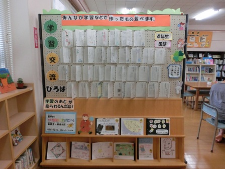 4年生が国語の授業で作った本の紹介カードも展示されています。多くの子たちに見て読んで欲しいです。