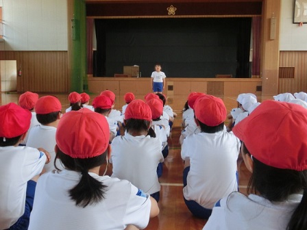 6月5日(月)の午後、西田幾多郎記念哲学館で県学童話し方大会が開催されます。本校からは3年生の西田さんが代表として大会に参加します。学年代表である西田さんを応援しようと、今日、学年リハーサル会が行われました。「体育館中に響く声で言っているのがすごくいい」「全部覚えて話しているのがすごい」「自分はあったことだけ書いたけど、西田さんは自分の思ったことを言っているのがいい」等、たくさんのことを褒めてもらいました。とっても上手でした!明日は、全学年の前でリハーサル、そして月曜日には本番です。自分の夢について、堂々と発表してきて欲しいです。頑張れ!
