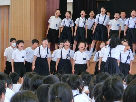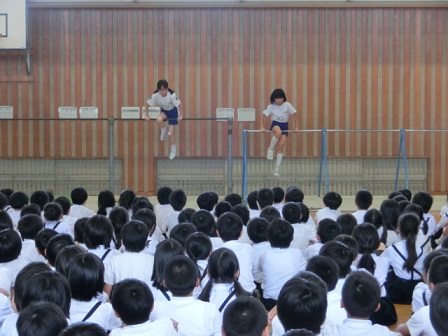 4年生の皆さん、この1ヶ月よく頑張りました。緊張で練習通りに行かなかった人も、上手くいった人も様々いるでしょう。しかし大切なのは、色々なことにチャレンジすることです。自分なりに一生懸命努力することです。演技の時には誰も助けてはくれません。自分でやりきったことが素晴らしい経験となるのだと思います。努力して一生懸命やりきった今回の経験を、これからの生活に生かして下さい。今後がますます楽しみな4年生ですね。