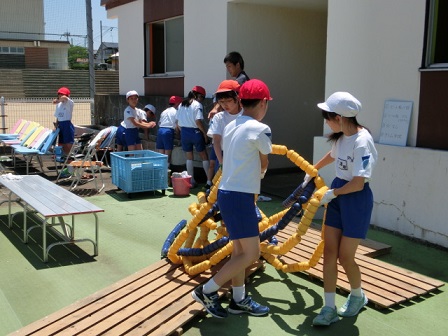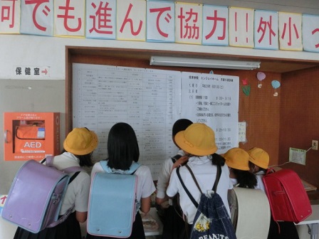 エンジョイホームの後、児童引き渡し訓練が行われました。最近の気候の変動は激しくて、大雨や暴風に見舞われるといったことも多々あります。日頃から様々な災害に備え、シュミレーションをしておくことは、大切です。「備えあれば憂い無し」にしたいものです。