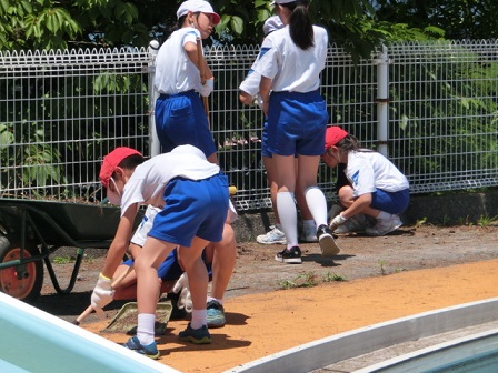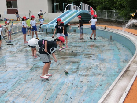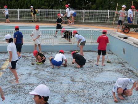 今日の午後、6年生がプールの中を掃除してくれました。毎年のことですが、暑い中、5年生が草むしり、6年生がプールの中をきれいにしてくれるので、全学年、プールでの授業が可能になります。6年生、ありがとう!いつもいつも縁の下の力持ちですね。頼りにしています!