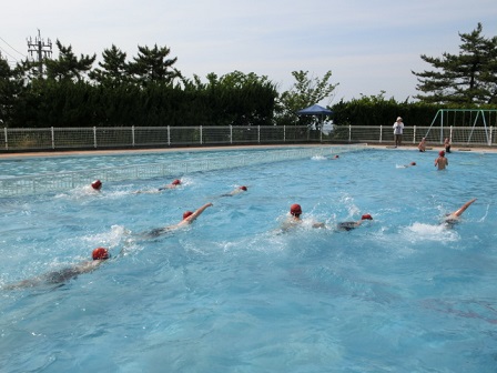 昨日の午後、6年生によりプール開きが行われました。今日は雨ですが、昨日は蒸し暑く、プール開き日和でした。初めにお神酒やお塩をまき、安全をお祈りしたあと、「プール使用のきまり」を確認し、各自が得意な泳ぎ方で泳ぎ初めという進行でした。プールでは、「プールの中でふざけない、プールサイドは走らない」がポイント。命に関わります。プールでの学習が安全に楽しく進められますよう、そして子どもたちの体と心が一層たくましくなりますようにと願いました。この時間、楽しい歓声があがり、運動場で体育をしていた他の学年はうらやましそうでした。