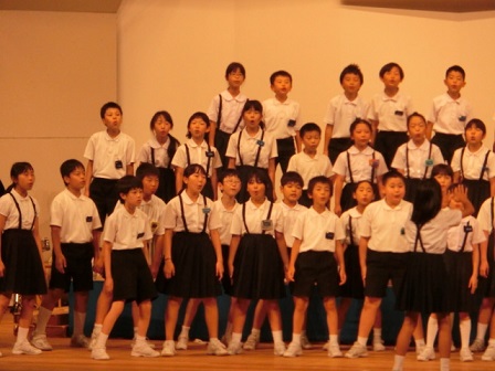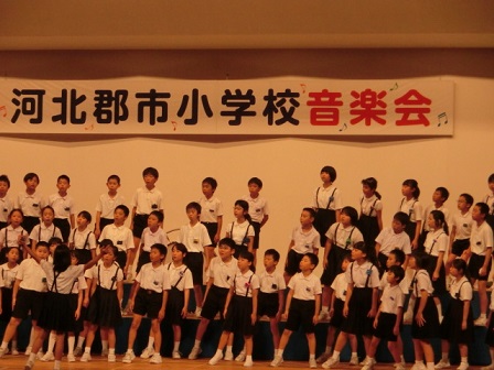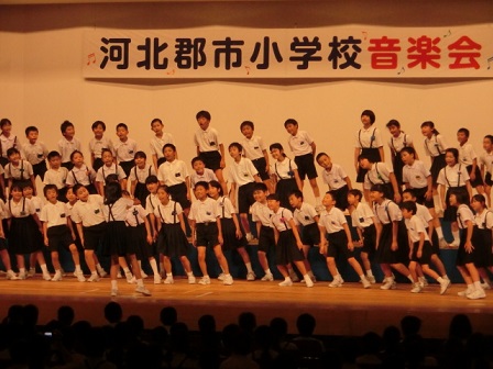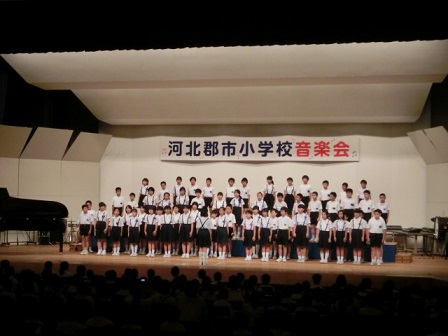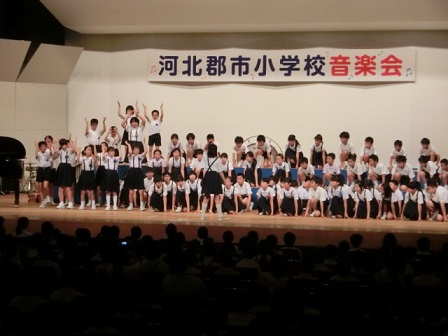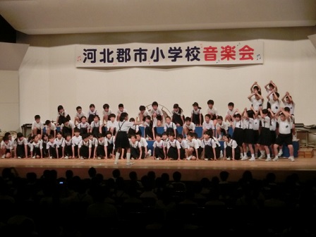 今日、河北郡市小学校音楽会が行われ、外小は前半の部の3番目に登場しました。緊張感漂う中、5年生は素晴らしい演奏を響かせてくれました。「静と動」、一つ目のクラップ&ストンプは、「動」。手拍子や足拍子を意味し、みんなで息の合った演奏を披露しました。素早い動きでしゃがんだかと思うと、様々なフォーメーションやバリエーションが次々と展開します。途中で「それ、それ、それ、それ」等のかけ声が入り、盛り上げます。手拍子や膝打ち、足拍子では大きな音が出ますが、胸をたたくと小さな音になります。「動」の中にも、実は「静」がありました。一曲目の最後には拍手をしない約束だったのですが、びしっときまった時に、会場から自然と拍手がおこりました。また二部合唱「この地球のどこかで」は、「静」。本当にきれいな天使の歌声でした。やさしい中にも力強い盛り上がりがあり、特にさびでは聴かせてくれました。「静」の中にも「動」がしっかりあり、「歩んでゆく道は、きっと違うけれど、同じ空見上げているから、この地球のどこかで」という、「みんなは一つ」というメッセージがしっかり伝わりました。5年生の皆さん、感動をありがとう。今日まで、一致団結、心を一つによく頑張りました。今後の活躍に期待しています。