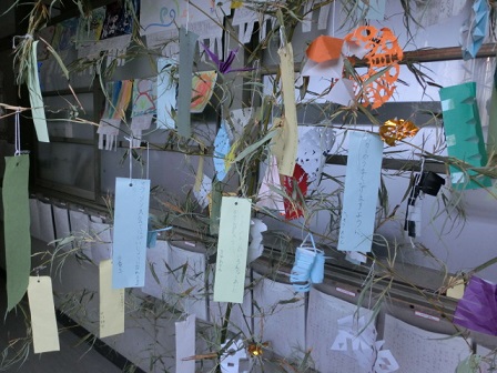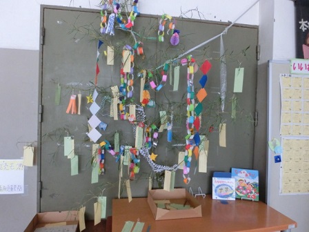 3年生が国語の勉強で、「きせつの言葉」という勉強を行いました。その中に紹介されている「七夕」が近いということで、七夕飾りを作ったり、願いごとを書いたりしました。「字がきれいになりますように」、「つくるのがじょうずな大工さんになれますように」、「化石、宝石にくわしい人になれますように」、「オリンピックに出られますように」「夏休みにおじいちゃんとつりのやくそく おじいちゃんがわすれませんように」などなど、とても子どもらしかったり、夢が素敵だったり、微笑ましかったり・・・。おじいちゃん、きっと忘れませんよ!