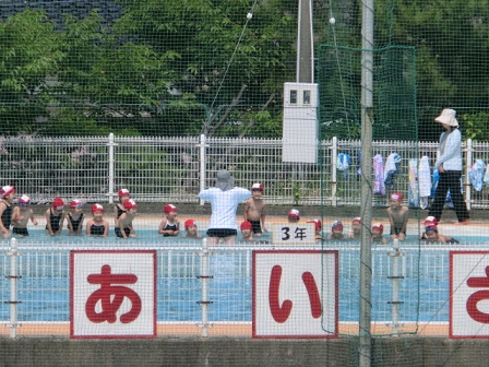 今日の2限目に、1年生がプールでの授業を行いました。着替え方や準備体操の仕方、プールの使い方に、頭にシャワーの水をかけるかけ方、バディ(安全のため作る二人組)の作り方、バスタオルの落ちないかけ方、整列の仕方などなど、たくさん勉強しました。小学校での初めてのプール、とても楽しく少しハイテンション?それでもちゃんと時間通りに教室に戻った1年生でした。おうちでもバスタオルを使った着替え方を練習しておくといいですね。できることが、また一つ増えますね。