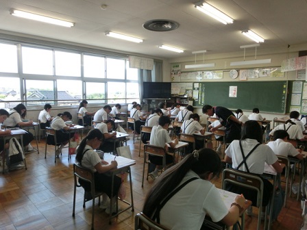 どの学年、どのクラスも学期末の追い込みです。テストやテスト返しの時間が多いです。間違えたところを見直し、どうすればよかったか確認しましょう。そしてもう1回解いてみる・・・「できた!」「わかった!」を実感して夏休みに入りたいものです。