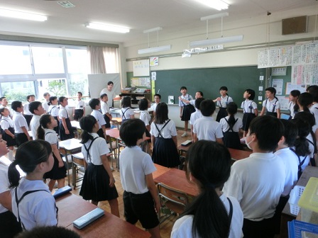 今日で1学期が終了しました。育てた夏野菜を収穫しているクラス、夏休みの「生活のきまり」を確認しているクラス、お楽しみ会を行い絆を深めているクラス、身の回りを整頓したりお掃除したりしているクラス等々・・・、終業式の日らしい様子が見られました。明日から41日間の夏休みが始まります。安全に気を付け(不審者に会わないで)有意義で思い出に残る夏休みになるといいですね。
