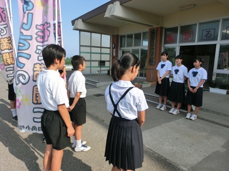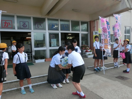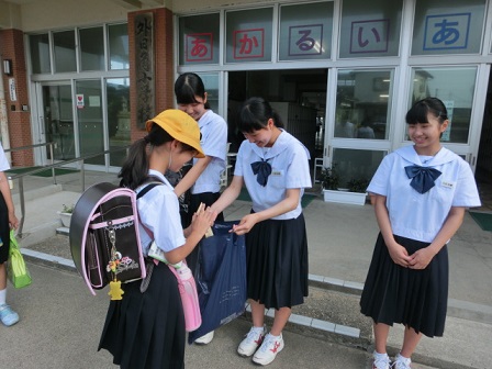 今朝、河北台中学校生徒会の皆さんが、プルタブ回収&挨拶運動をするために、外小に来てくれました。プルタブを持たせて下さった保護者の皆様、ありがとうございました。笑顔溢れる朝のひとときとなりました。