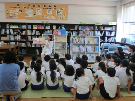 今日の昼休み、図書ボランティアさんによるミニお話会が行われました。暑い中でもたくさんの子たちが集まり、手遊び歌や読み聞かせを楽しんでいました。夏休み中も、たくさん本を手に取り、本に親しみ、本を読んで下さいね!