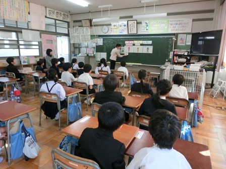 今日、1年生のクラスで、栄養教諭の先生に来ていただいて、「好き嫌いをなくそう」の授業が行われました。話に聞き入ったり、「へぇ~わぁ~ふぅ~ん」と声を出したりしながら学んでいる1年生でした。いろんな食品から栄養を取り、体を大きくしていきたいものです。