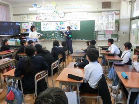 今日、5年生のクラスで、津幡書の方を講師に招いてピュアキッズスクールが行われました。テーマは「万引き」。4枚の場面絵にそって、万引きを誘われた子、誘った子の気持ちを考えながら、最後に万引きをするとどうなってしまうのかについて考えを深めました。万引きをすると親・家族を悲しませてしまう。悪いことをすると、それはすべて自分に戻ってくる等と言った思いが出されました。悪いことをやらないためには、正しく判断する力や、いいことか悪いことかを考える力がいるという考えも出されました。友達がやっているから・・・ということを言い訳にして、引きづられてやってしまっていることがないのか・・・自分を振り返って考える貴重な機会になりました。