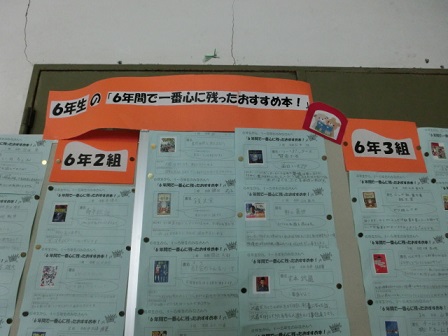 明日は、今年度最後の授業参観です。特に、卒業まで32日となった6年生にとっては小学校最後の参観日となります。児童玄関には6年生が下級生にお勧めする本の紹介なども掲示してあります。ぜひご覧下さい。