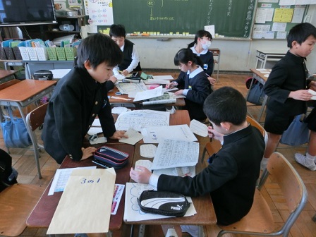 今日は土曜参観でした。お忙しい中、足下の悪い中、たくさんの保護者の方に来ていただき、ありがとうございました。子どもたちの中には、ずいぶん緊張した子もいたようですが、考えをもとうとする姿、友達と相談する姿、考えを伝えようとする姿などが、見られたことと思います。
