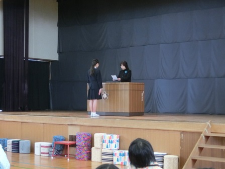 6年生に一番お世話になった1年生が感想発表をしました。「大きな声で」「はっきりと」「すごい迫力で」「すごかった」と言っていました。聞いた6年生はにっこりでした!