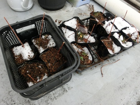 雪をかぶったフジバカマ、今は、棒?が1本ですが、春には葉を付け成長します。そして、美しい風情のある秋の七草になります。(アサギマダラの大好物!)