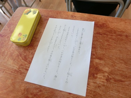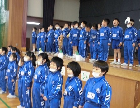インフルエンザが猛威を振るっている本校において、2クラス合わせて欠席2名という1年生。とっても元気でうれしいです。明日、年長さんを迎えるということで、休校だった二日分を取り返すように、午前中、出し物の練習をしていました。