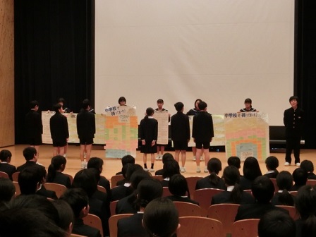 以前、河中の生徒さんが中学校生活の様子について、小学校に教えに来てくれたとき、小学生から出された質問がありました。その質問について、アドバイスを書いてくれたようです。アドバイスカードが貼られた模造紙を頂きました。掲示しますから、6年生のみなさんは、くわしく読んでみるといいですね。