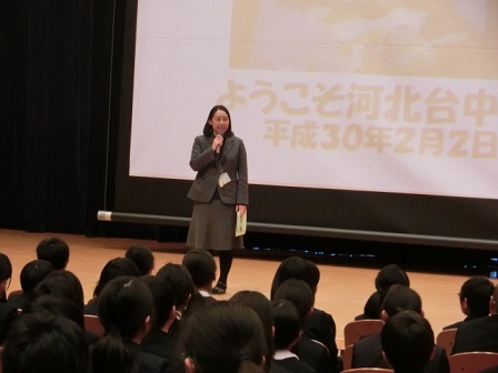 今日、6年生が河北台中学校体験入学を行いました。青空の広がる気持ちのよい小春日和に、歩いて登校。緊張感をもってオリエンテーションを聞き、授業体験を行いました。今日の体験を生かし、様々な準備をしてあと2ヶ月を過ごしたいものです。
