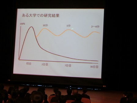 誰しも忘れるのですが、ちょっとした復習で記憶が保たれるのですね。家庭学習での復習の大切さを、根拠を示して分かりやすく説明して下さいました。