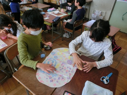 6年生が家庭科の時間にプレゼントを作っていました。お世話になった先生方へのプレゼントだそうです。各クラスで何を作るか話し合ったそうです。どれも工夫があり、何より心がこもっていて素敵な作品ばかりでした!