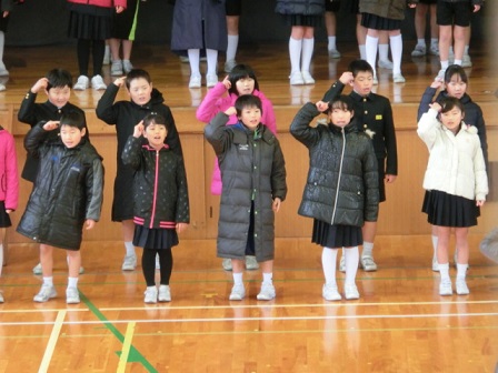 在校生の気持ちに応えようと、最後は6年生のお礼の歌。自分たちで考えた振り付けで、いとも簡単に?さらりときれいな歌声を響かせ歌って踊ってくれました。さすが6年生!